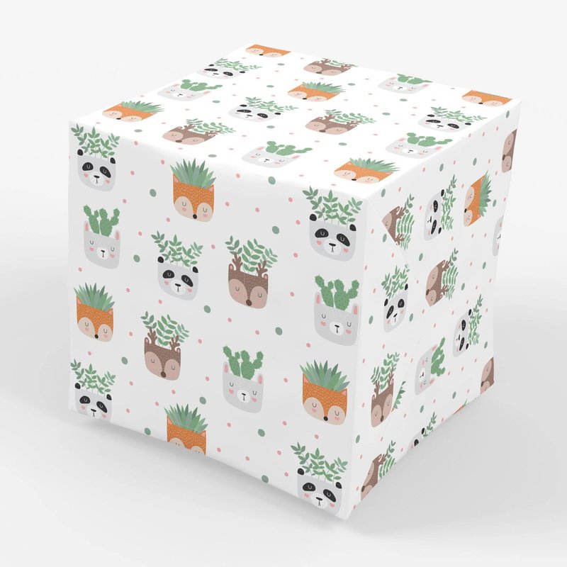 - Adorable animal succulent planter themed gift wrap, perfect for wrapping birthday, shower and holiday gifts