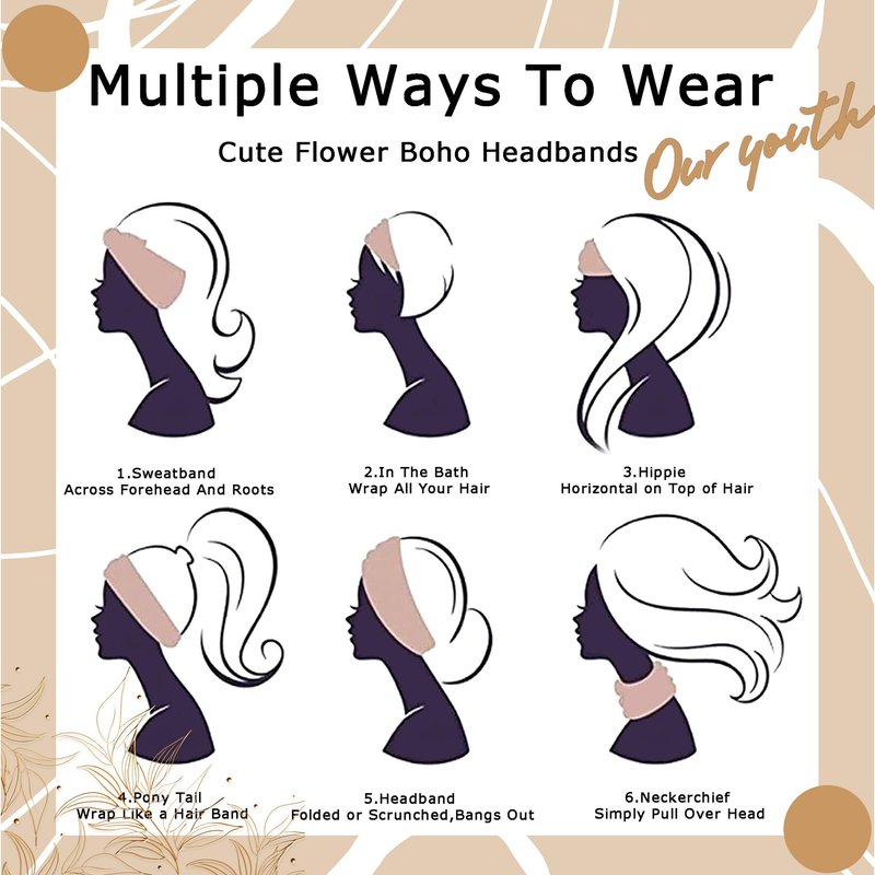 - Wide Application:These Elastic Boho Bandeau Headbands Are Not Only Suitable for Outdoor Activities,Such as Running,Exercise,Hiking,Prom,Parties,But Also Suitable for Daily Activities,You Can Wear These Head Bands for Women's Hair While You Makeup or Wash Face.