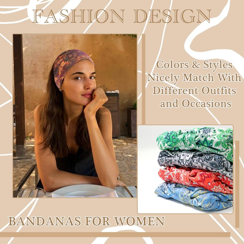 - Package And Size: You Will Receive 4 PCS Headbands for Women's Hair.The Length Not Stretched Is about 6 Inch, Width Is about 9.5 Inch, The Maximum Width after Stretch Is about 15 Inch.You Can Adjust The Size According to Your Head Size Needs.These Fashion Hair Bandana Are Suitable for Women And Teen Girls.