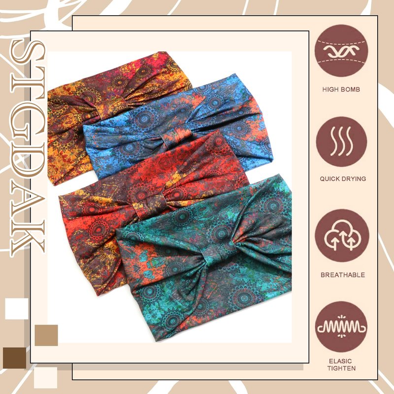 STGDAK Boho Headbands for Women,Retro Floral Pattern Hair Band,Non Slip Hair Band,Cotton Fabric Cloth Headbands,Fashion Elastic Head Turbans Yoga Sports Runnig Hair Accessories for Women Girls 4 Pack