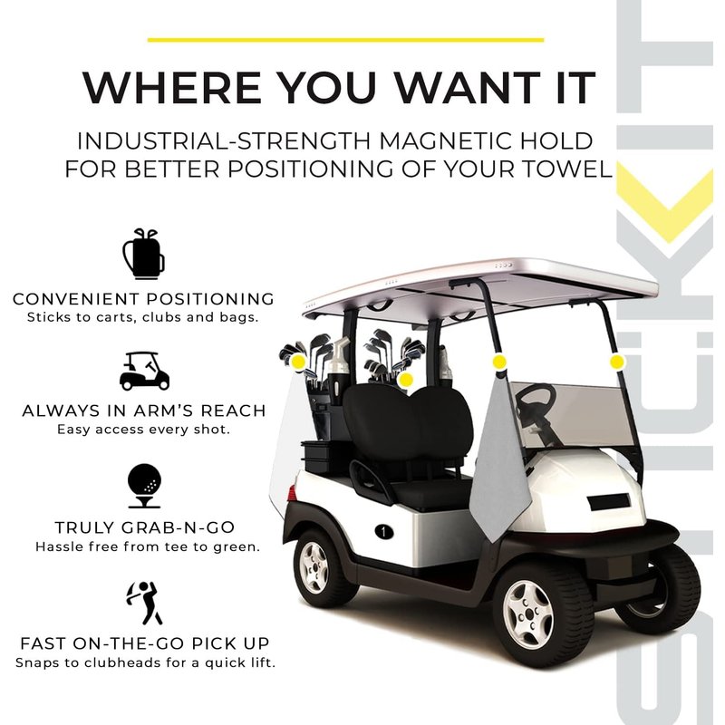- ALWAYS WITHIN ARM’S REACH - The STICKIT Magnetic Towel is the ultimate GRAB-N-GO Golf towel. The powerful magnet offers ultimate convenience. Stick it on your Golf Cart, Golf Clubs, or any conveniently placed metal object