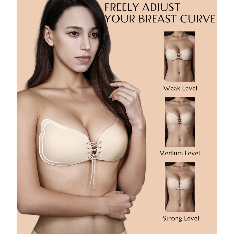 - More Full & More Sexy Cleavage --- New Upgrade umooie Sticky Strapless backless Adhesive Invisible Push-up Bra.The Sticky strapless backless bra helps to push up your breasts and keep your breasts in a good position to prevent sagging. Just need a little pull, and it'll give you a full and sexy cleavage. Drawstring closure design make your breasts look more Full, more Nice and Sexy Cleavage.
