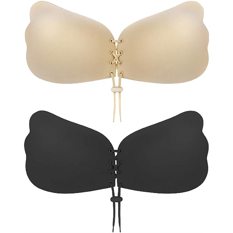 Sticky Bra 2 Pairs Strapless Backless Bra Adhesive Invisible Lift up Bra Push up Bra for Backless Dress (Beige and Black) B