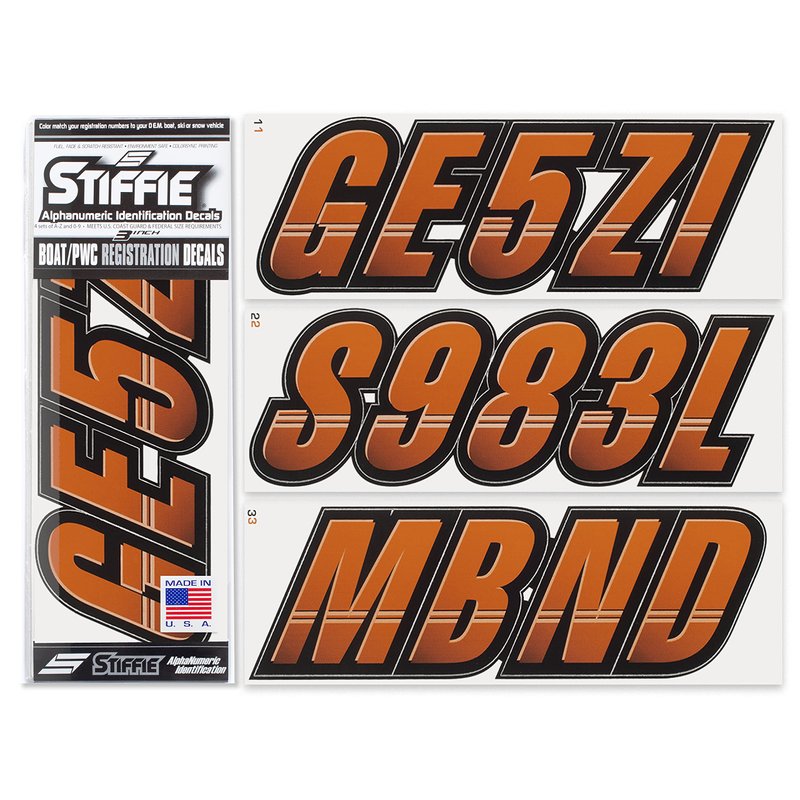 STIFFIE Techtron Rust/Black 3" Alpha-Numeric Registration Identification Numbers Stickers Decals for Boats & Personal Watercraft