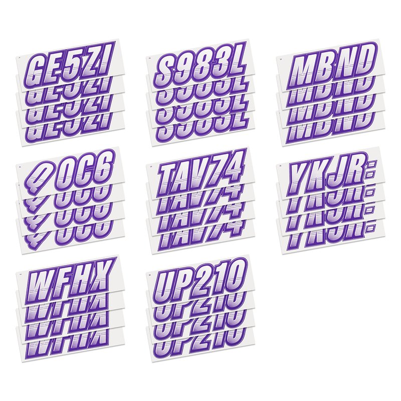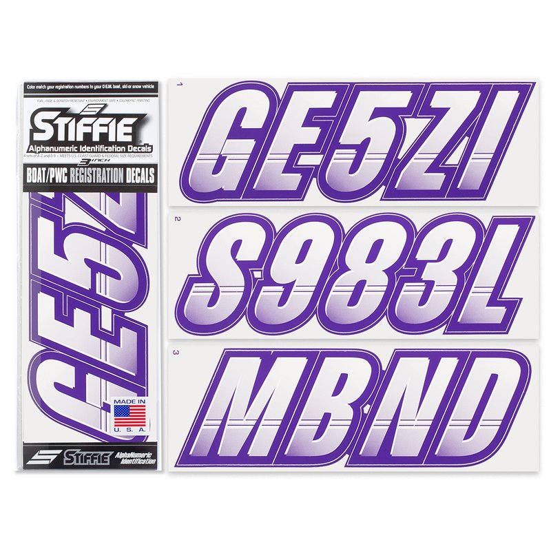 Stiffie Techtron White/Purple 3" Alpha-Numeric Registration Identification Numbers Stickers Decals for Boats & Personal Watercraft