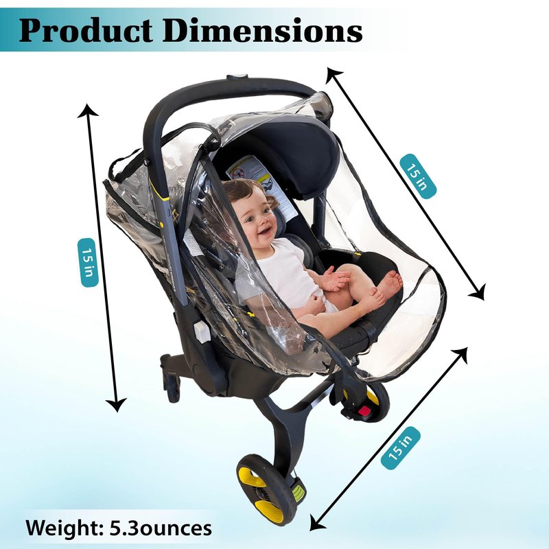 - Doona Stroller Compatibility: Specifically engineered to work seamlessly with the Doona Stroller, this rain cover offers a perfect fit, enhancing the overall protection for your baby during travel.