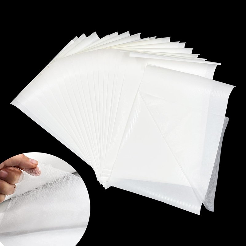 - PACKAGE INCLUDE: 20 sheets medium weight paper backed fusible web, which size is 8" x 12", designed and optimized for applique. Double sided fusible interfacing designed for gluing two items together.