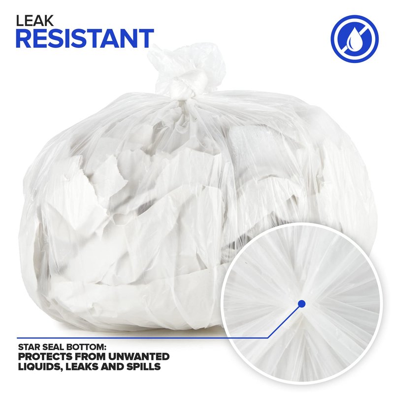 - Leak Proof: Designed with a star seal, our garbage bag protects your waste basket from unwanted liquids, leaks, and spills. Great liners for small waste bins, school bathrooms, or office trash cans.