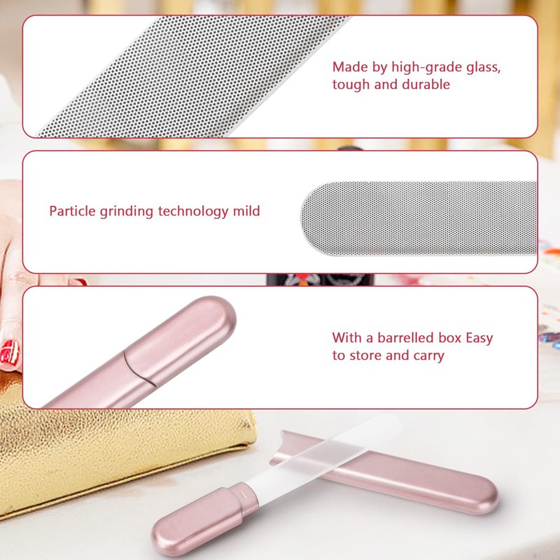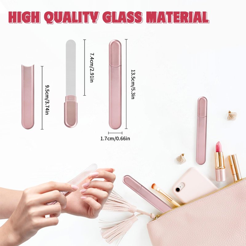 - đăValentines Day Gifts for HerăThe glass nail files for natural nails with case will not scratch the objects in your bag. Size(glass nail file):13.5*1.7*0.5cm/5.3*0.66*0.2 in.it is lightweight compact and convenient to put inside the bag, purse. This glass nail file comes with a portable case, making it convenient to bring with you wherever you go. Whether at home or on vacation, at school, in the office, prepare a glass file, you can do nail care routine anytime!