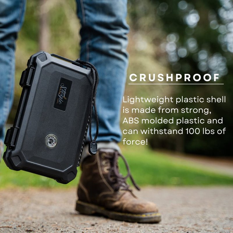 "STOGIE SAFE” – TRAVEL CIGAR HUMIDOR FOR MEN - Our cigar humidor is the best way to keep your cigars safe, in prime smoking condition. This cigar travel case has a crush-proof & airtight seal design. In addition to the style, the container is functional that keeps cigars secure, won’t roll around and has a built-in hygrometer to monitor humidity while traveling. FEATURES: Crush-Proof ABS Molded Plastic, Airtight Seal & Waterproof Up To 100ft., Stainless Steel Hinge, 2 Strong Locking Clasps, High Density Foam (Removable), Built-In Hygrometer, Fits Up To 11 Petit Corona Cigars, Premium Quality & Design: This model can hold up to 5 7” cigars and features a shockproof and waterproof design that will protect your cigars and keep them fresh. This model is made out of heavy-duty, tough ABS plastic and comes with foam inserts on the interior, which will cradle each of the cigars, helping to prevent damage during transport. Perfect Travel humidor for Cigars. If you’re looking for a durable, waterproof travel humidor that’s travel friendly, then the “Stogie Safe” is an excellent choice. It is a great accessory to carry while you go to the golf course, hunting, fishing and camping, if you’re looking for a travel-friendly humidor to take with you on your next vacation. Built tough and designed to last!