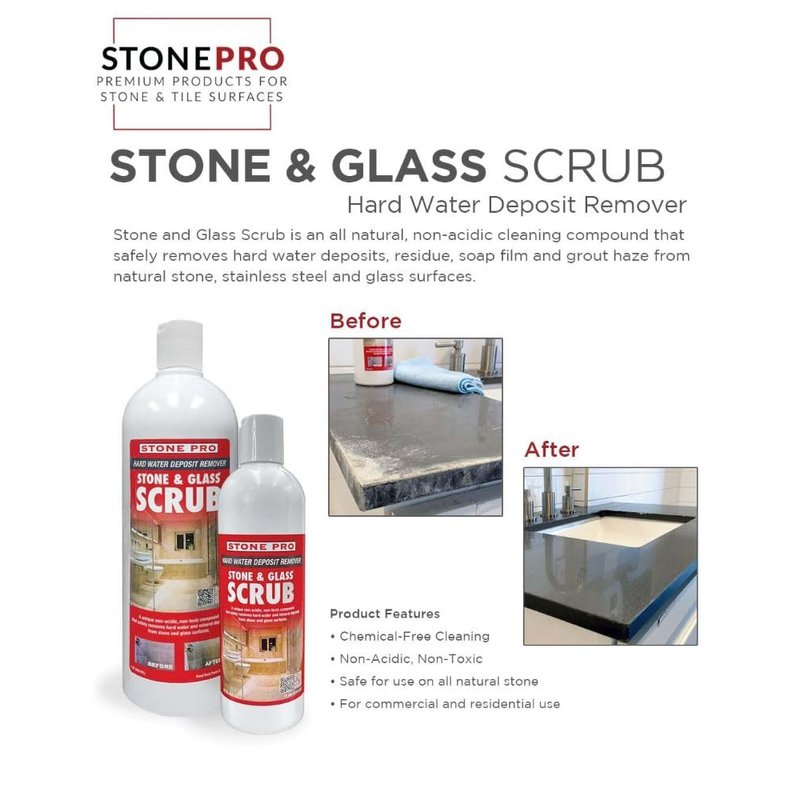 Stone Pro Stone and Glass Scrub - Hard Water Stain Remover - Remove Spots on Glass, Natural Stone, Quartz, & Metal Fixtures (Pint)