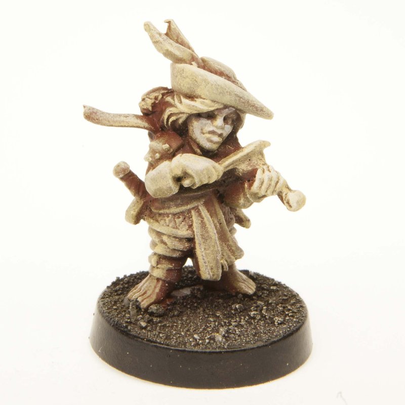 - Miniature could be used as a Bard, Musician, Troubadour, Archer, Ranger . This Halfling Bard is equipped with bow, quiver full of arrows, sword, violin and hat with a feather in it .