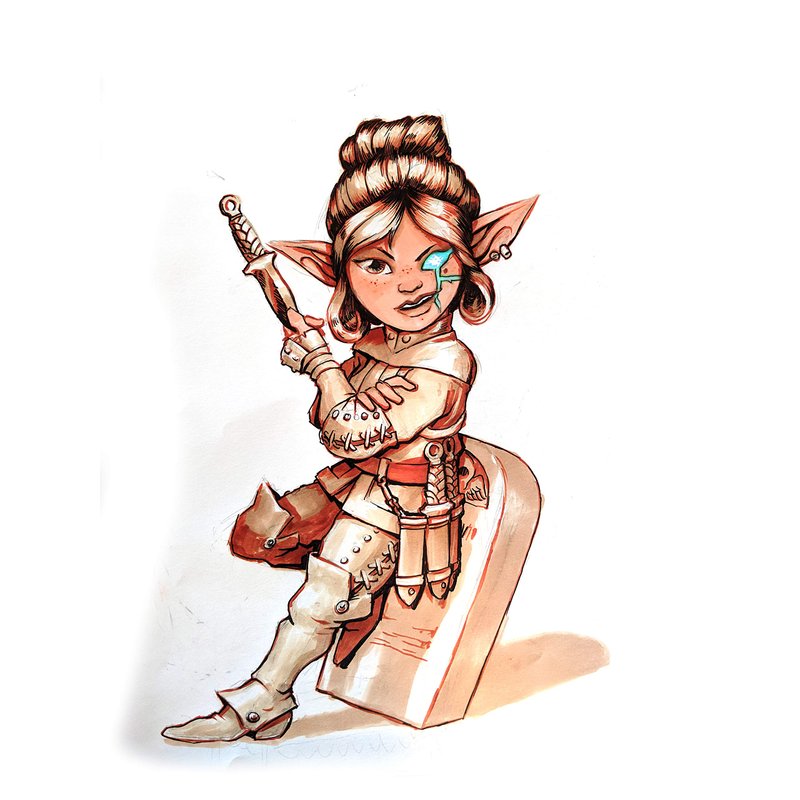 - Miniature could be used as a rogue, thief, assassin, spellblade, duskblade. This gnome comes equipped with a brace of throwing knives, leather armor, and the scars of a life lived in the shadows.