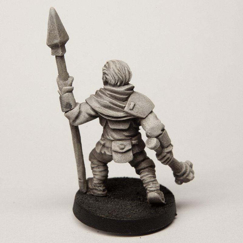 - Miniature could be used as a fighter, warrior, paladin, mercenary, or soldier. This human is equipped with medium armor, a belt pouch, a spear, and a mace.