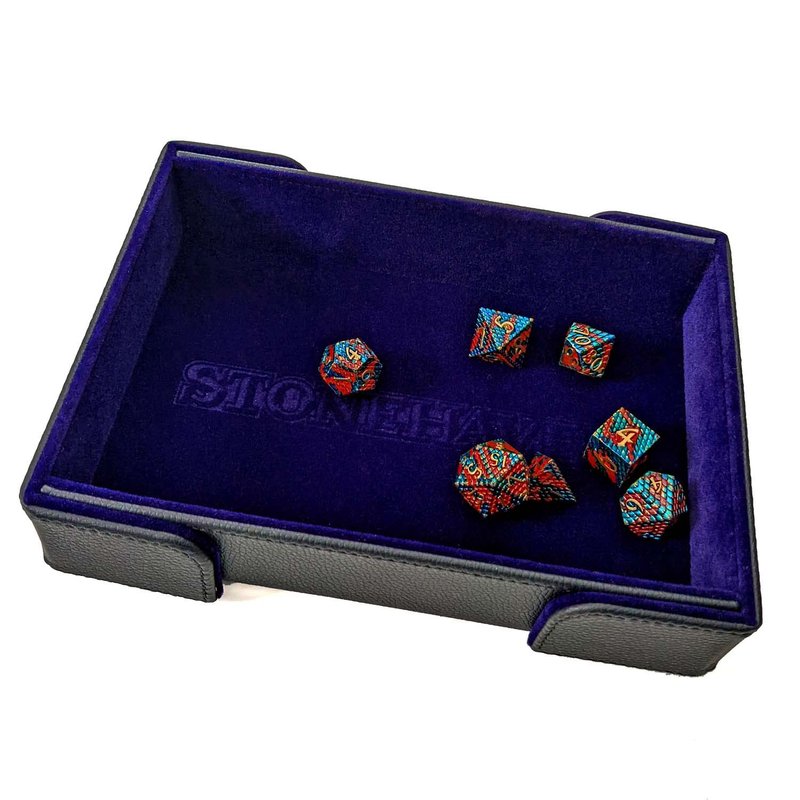 Great for Family Game Night, Dungeon-crawling, RPGs and Tabletop War Gaming. This foldable magnetic dice tray will keep your dice from tumbling off the table while protecting your gaming surfaces. Subtly debossed with the Stonehaven logo, it is the perfect gift for the gamer in your life!