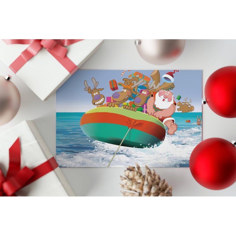 - Santa having a little fun on the water. Funny boating boxed Christmas cards.