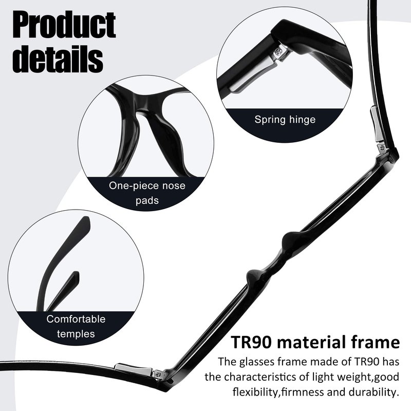 - ▲TR90 LIGHTWEIGHT FRAME - Glasses frame is made of TR90 material,TR material makes the glasses very light,can reduce the burden of nose and ears. The spectacle frame has high elasticity, strong toughness, not easy to break, and no break, so it has sports safety.