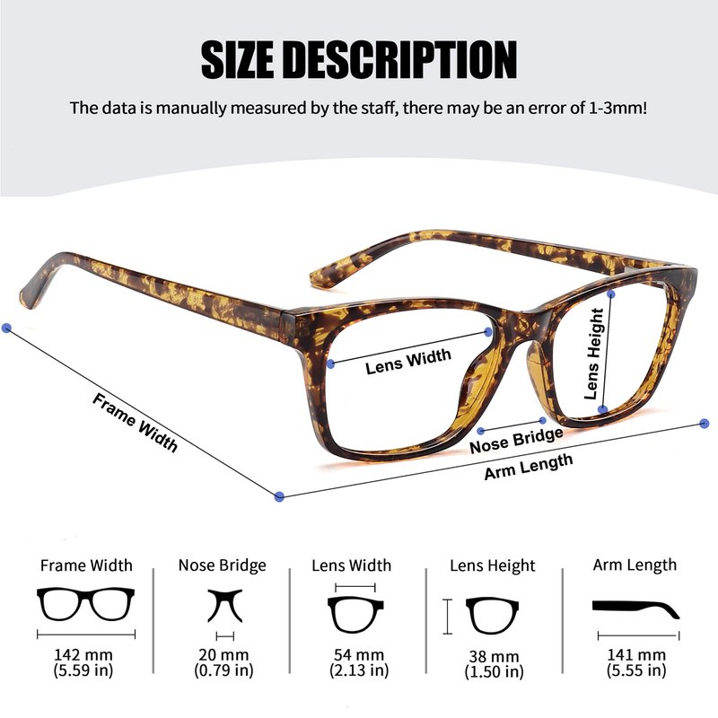 - ▲ SPRING HINGE FRAME - The temples can be adjusted so that the face will not be pinched, and the ergonomic design radians makes it more comfortable to wear, suitable for various face shapes.