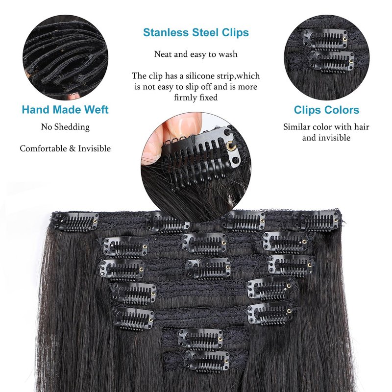 - Hair Material: Our Straight Clip-In Hair Extensions Are Made from Virgin Human Hair, Ensuring That They Look And Feel Just Like Your Own Hair, Ensuring That They Are Durable and Long-Lasting, Designed to Blend Seamlessly With Your Natural Hair, Creating a Natural And Seamless Look
