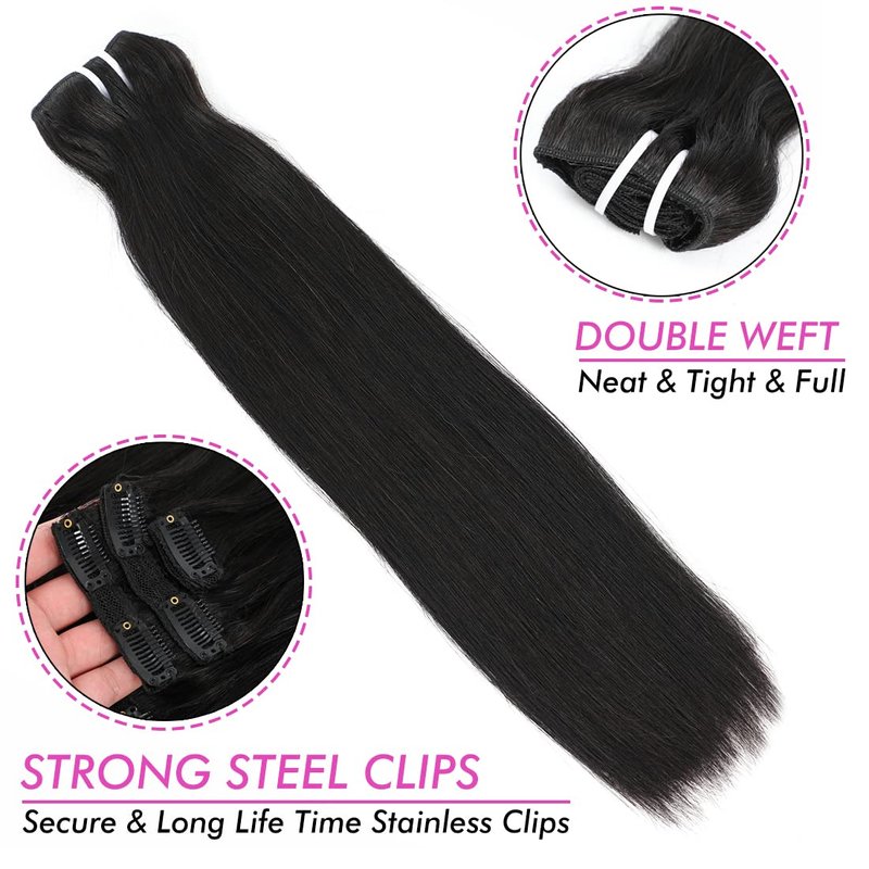 - Advantages: Straight clip ins is silky soft, durable, reusable, easy make-up; Can be straightened, Permed and styled as your own hair
