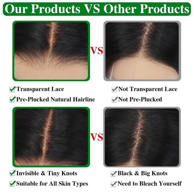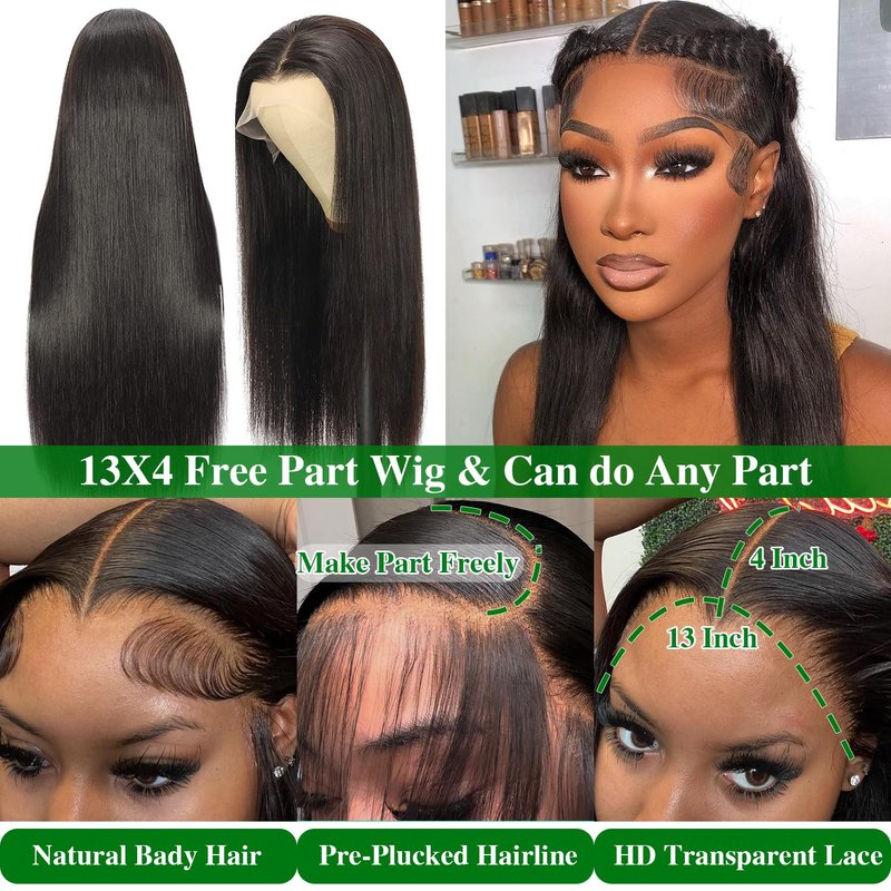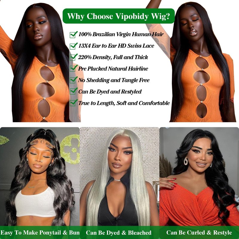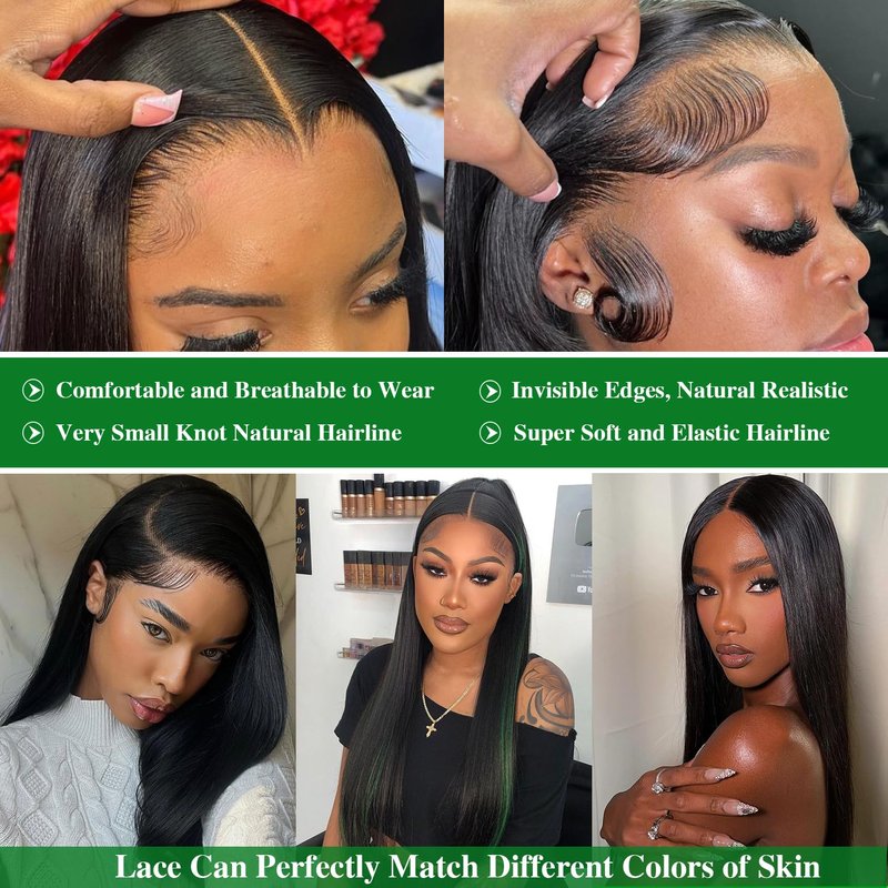 - 13x4 HD Lace Size: Straight wigs, top 13x4 hd ear to ear swiss lace, more durable, invisible, soft and breathable, the lace area can do any part, perfectly match any skin tone. Lightly bleached knots very small and just as your own hair