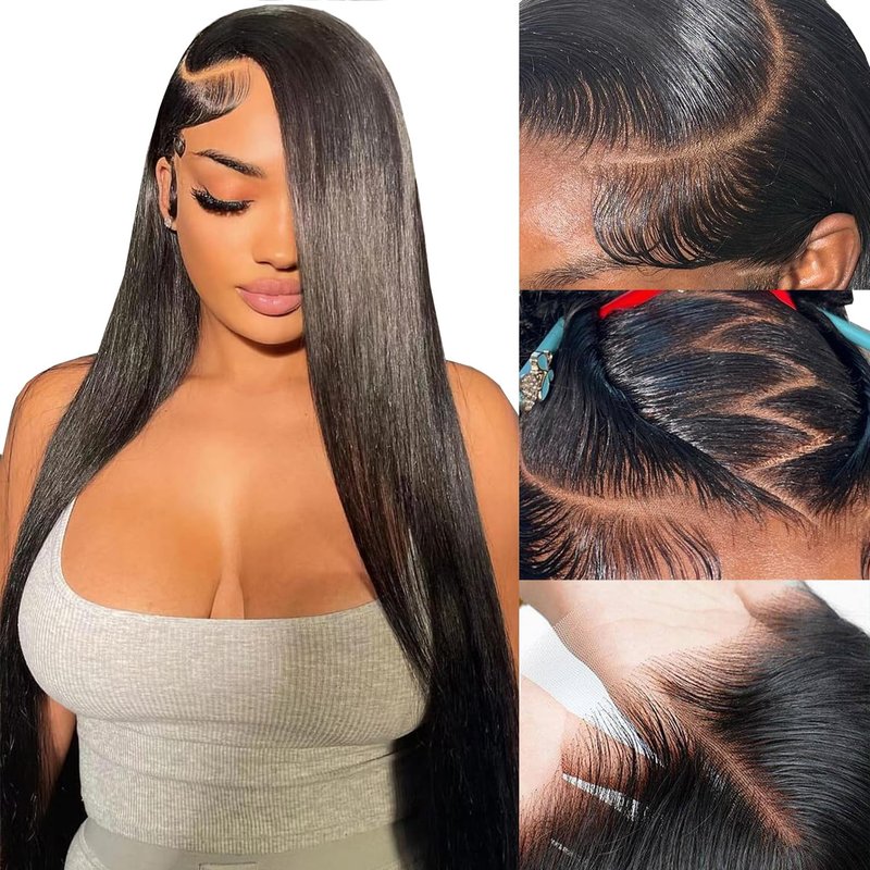 - True Length 220% Density: Straight lace front wigs human hair, 220% Density, true to length and weight, full and healthy ends, thick from head to tail, no tangles or splits, silky clean, baby hair around and pre-plucked hairline, looking more natural