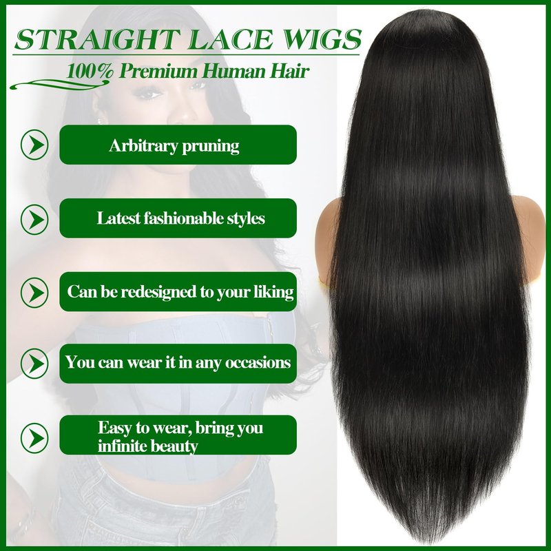 - 100% Real Human Hair Wig Material: Straight lace front wigs made of 15A 100% human hair, cut from young girl, feeling silky, soft, full, thick, no shedding, no tangle, lice, can be restyled, dyed, permed and curled. Last long under good hair care