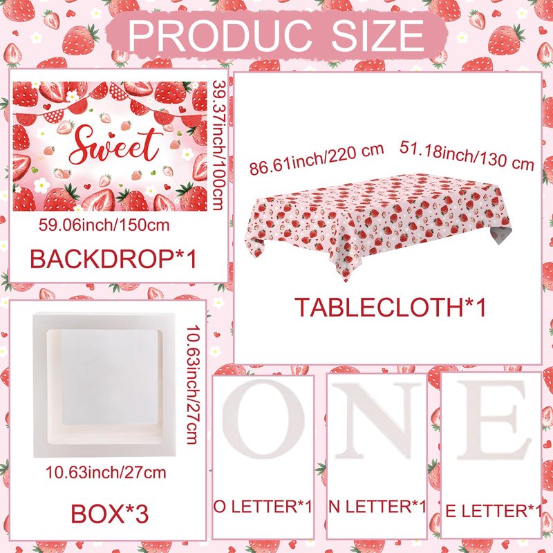 - NOT JUST 1st BIRTHDAY:Unlike other strawberry themed backdrops with ‘ONE’ as the core, the clearly printed ‘SWEET’ banner and strawberry tablecloths are suitable for both girl's 1st birthday and can also be applied to other age birthday parties, girl's baby shower parties, summer fruit parties, and other theme parties.Banner Size: 59.06*39.37inch/150*100cm, Tablecloth Size: 86.61*51.18inch/220*130cm