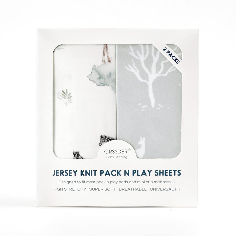 - Ultra Soft & 4-way Stretch: Made of 100% high quality soft stretchy jersey knit fabric. GRSSDER mini crib sheets offer a breathable, sweat-absorbent tee shirt like feel for exceptional comfort, providing your little ones a safe and to stay in place throughout the day.