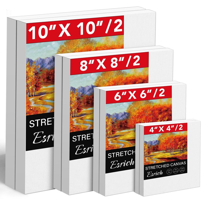 - Art Canvas Bulk: Our blank canvas set comes in 4 different sizes, 4×4”, 6×6”, 8×8”, 10×10”, 2 of each, total 8 pack, small and large canvas for painting to suit your many needs, whether you are a veteran artist or an amateur enthusiast.