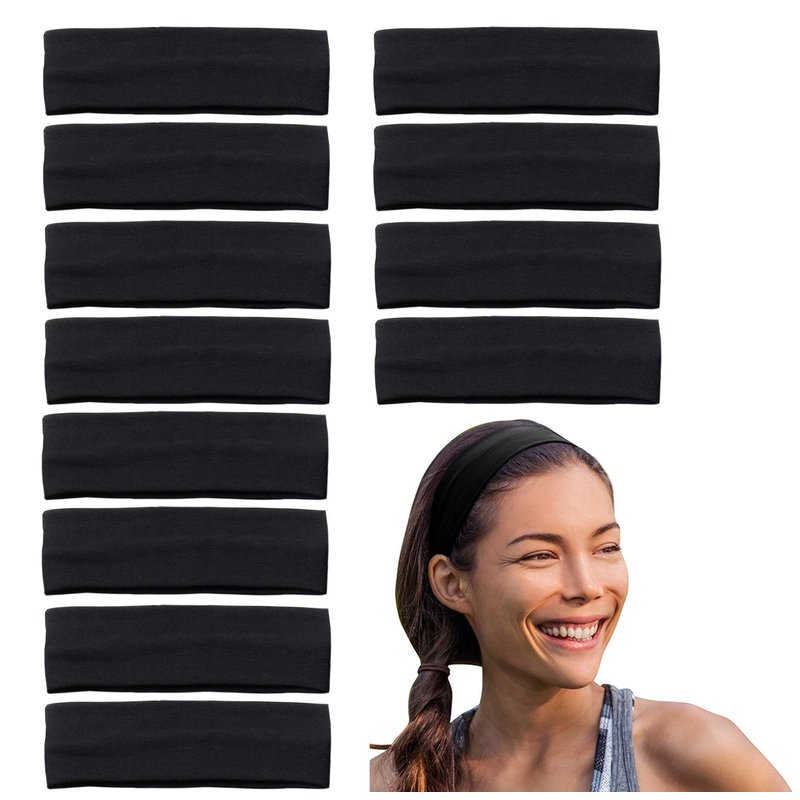 Stretchy Headbands for Women - Yoga Headbands - Sports Headbands - 2-inch-Wide Black Headband - 12 Pack Cotton Headbands by Coveryourhair