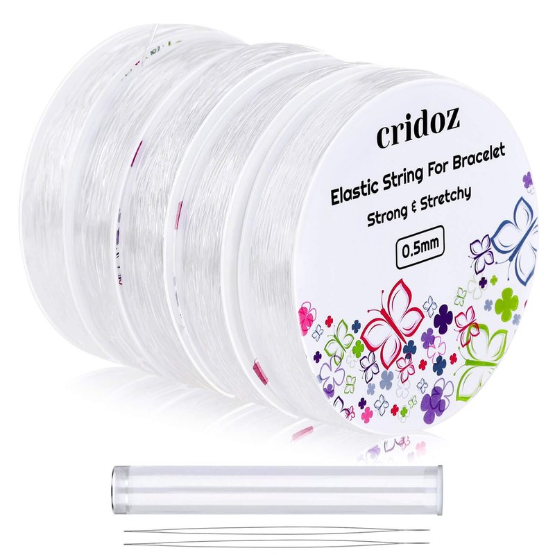 - Stretchy String for Bracelets: Cridoz elastic string kit comes with 5 rolls of different sizes clear elastic cord for bracelets and 2 pieces of large eye beading needles, great for seed beads, pony beads, friendship bracelets, Kandi necklace, crafts and jewelry making