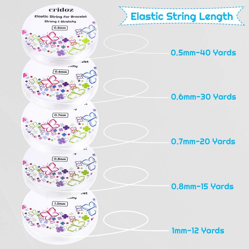 - Different Sizes Bracelet String: The elastic string for bracelets are available in 5 different sizes: 0.5mm, 0.6mm, 0.7mm, 0.8mm, and 1mm. Provide you a good selection of sizes to fit all kinds of beads and various of jewelry making projects