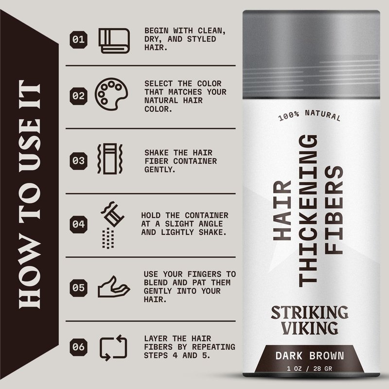 - EASY TO USE: These user-friendly hair fibers make it effortless to enhance your hair's appearance with a simple and easy application process.To use hair fibers effectively, simply sprinkle or apply the desired amount onto clean, dry hair, and gently blend for a seamless and natural-looking enhancement.