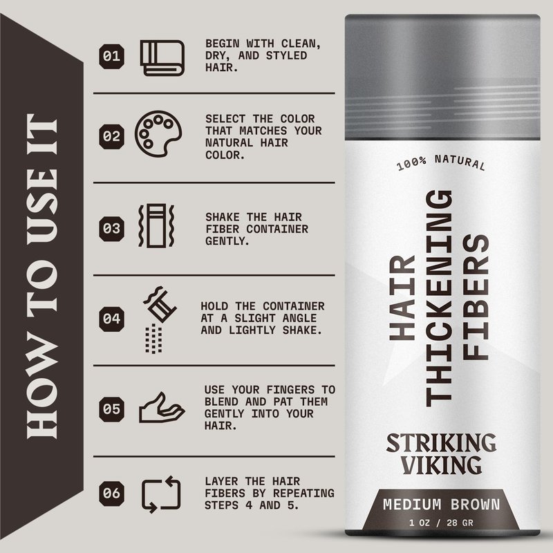 Striking Viking Hair Fibers for Thinning Hair - Hair Building Fibers (Medium Brown) 28g - Naturally Derived Formula - Long Lasting Hair Powder for Undetectable, Thicker Looking Hair for Men & Women