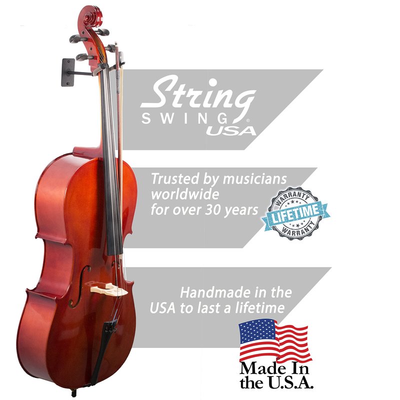 - ✔LIFETIME STRUCTURAL WARRANTY - The STRING SWING CELLO HANGERS are CERTIFIED 100% MADE IN USA with REAL AMERICAN STEEL and backed by a LIFETIME STRUCTURAL WARRANTY –and Add yours to cart Now and keep your cello safely stored while supplies last!