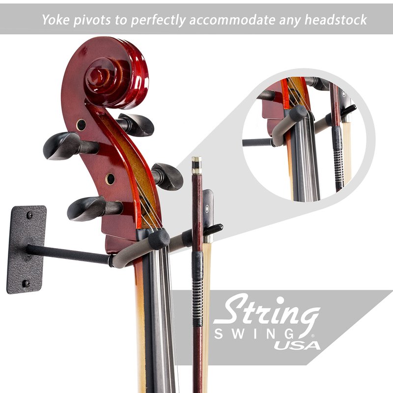 String Swing BCC03F4-FW-C Cello Hanger Wall Mount with Bow Holder Peg Electric and Acoustic