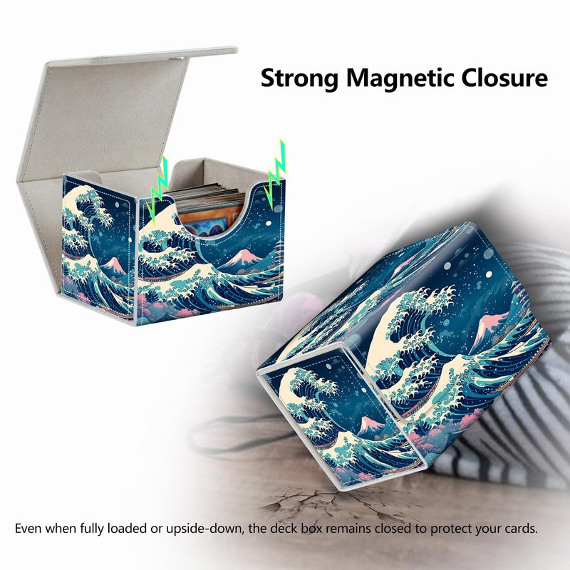 - Magnetic Closure: The Magic The Gathering deck box is secured with tight stitching and 4 strong magnets to keep the cards safe during transport. Even when fully loaded or upside-down, the deck box remains closed to protect your cards.