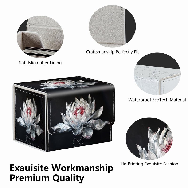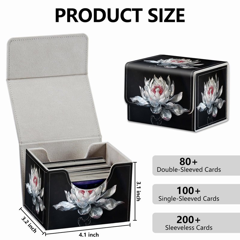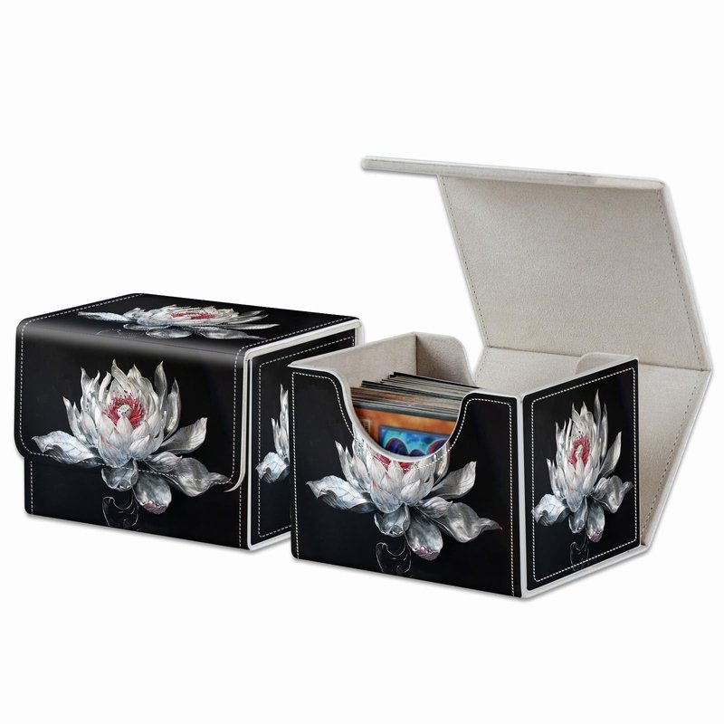 Strong Magnet Card Case Deck Box Mtg Card Box Playing Card Box Magic Deck Box Tcg Up to 200 Cards Creative Pattern Trading Card Storage Box for Collectible Card Games, White Lotus Silk Flower
