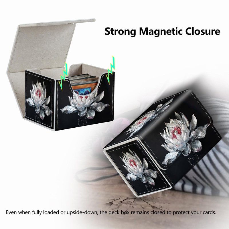 - Magnetic Closure: The Magic The Gathering deck box is secured with tight stitching and 4 strong magnets to keep the cards safe during transport. Even when fully loaded or upside-down, the deck box remains closed to protect your cards.