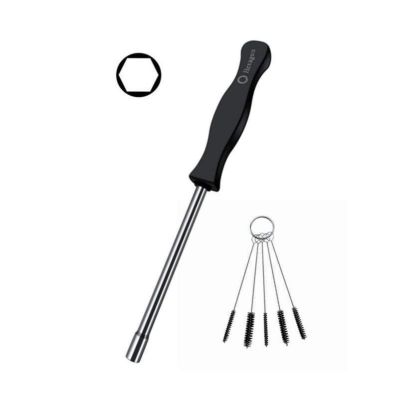 - A set of 5 small carburetor jet cleaning brushs come together with the the tool.