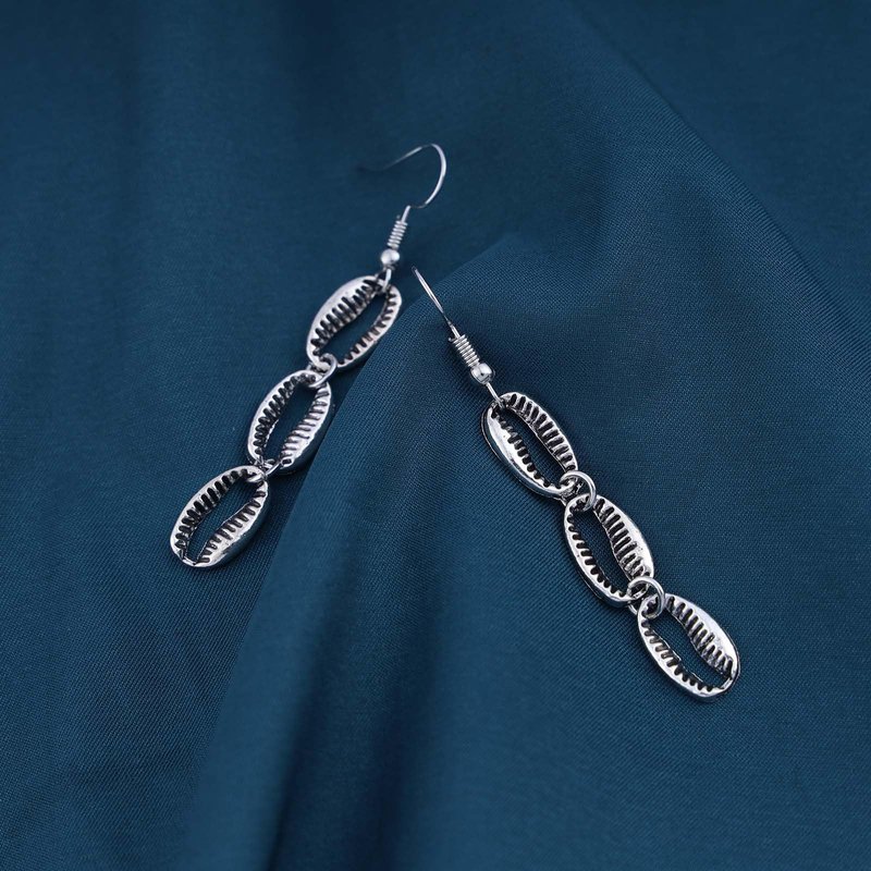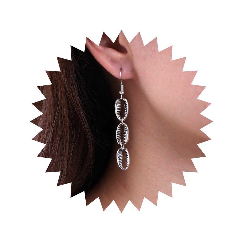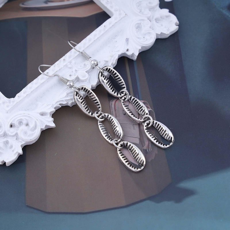 - Cowrie dangle earrings.Item Details:Handmade Item.Size:As Shown.Color:Silver.Materials:Quality Alloy.Location:Ear.Style:Boho/Vintage.