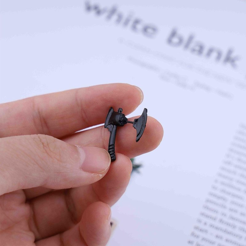 - Black axe jacket earrings.Item Details:Handmade Item.Size:As Shown.Color:Black.Materials:Quality Alloy.Location:Ear.Style:Boho/Vintage.