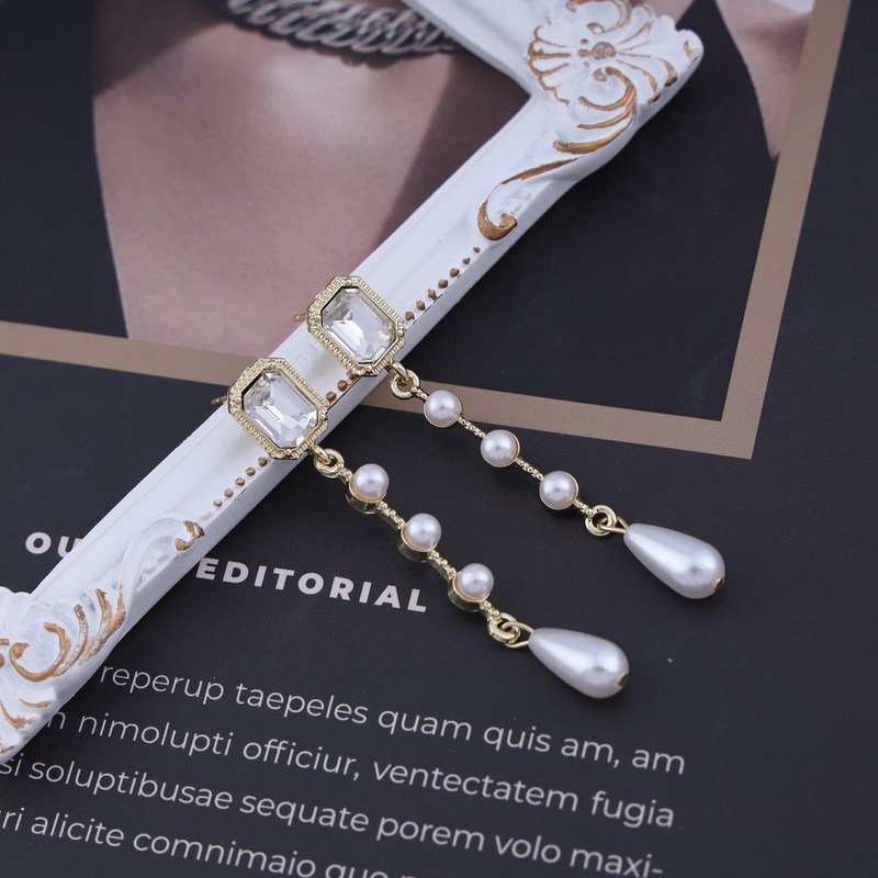 Sttiafay Vintage Crystal Pearl Dangle Earrings Teardrop Pearl Drop Earrings Long Tassel Pearl Earrings Gold Cz Square Stud Earrings Jewelry for Women