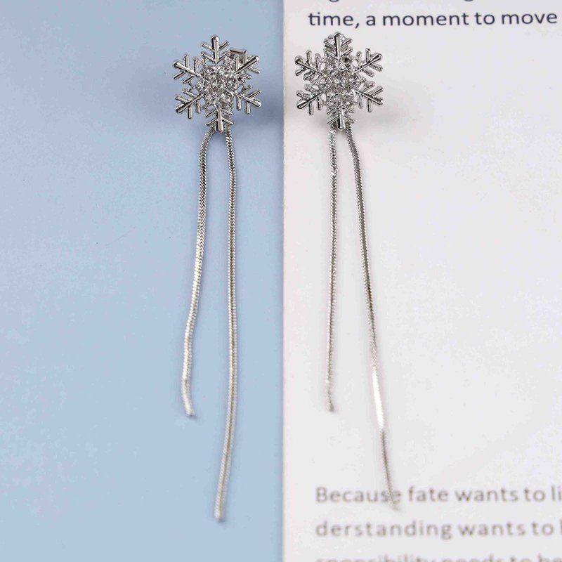 Sttiafay Vintage Crystal Snowflake Chain Earrings Cz Snowflake Stud Earrings Silver Long Chain Tassel Earrings Metal Snake Chain Drop Earrings Jewelry for Women