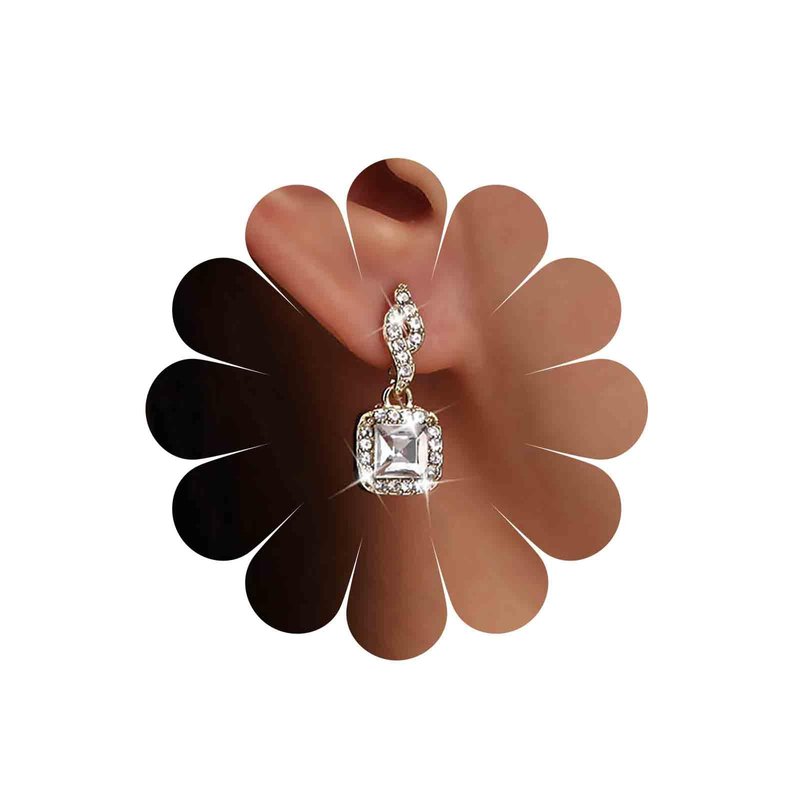 - Crystal square drop earrings.Item Details:Handmade Item.Size:As Shown.Color:Gold.Materials:Quality Alloy/Crystal.Location:Ear.Style:Boho/Vintage.