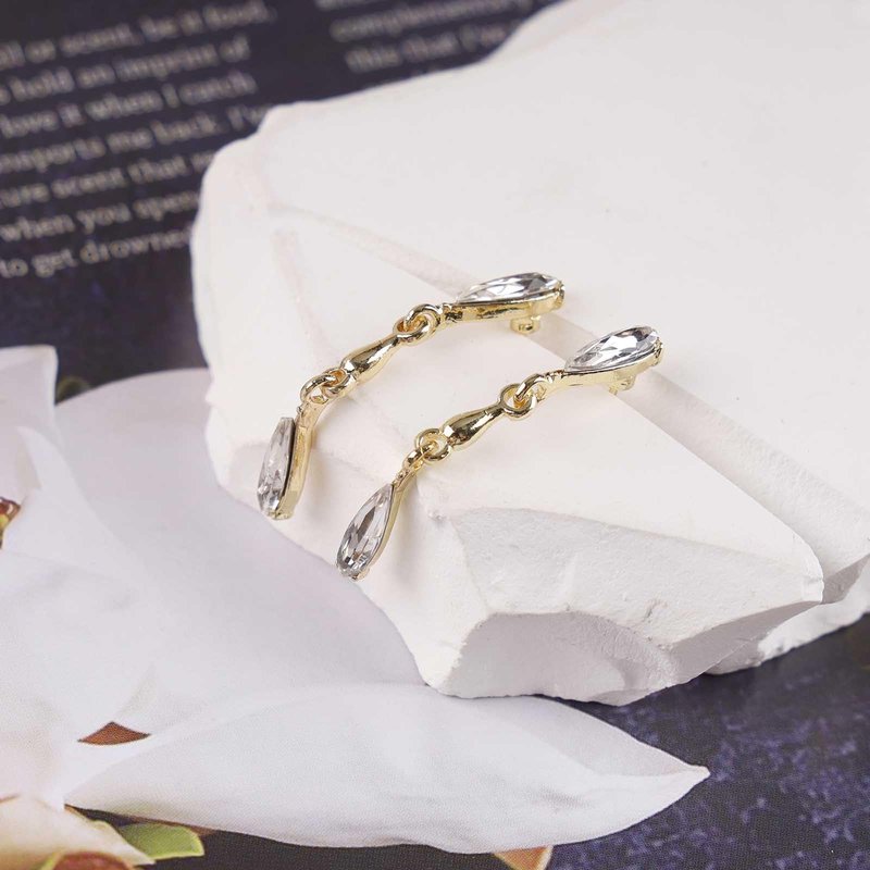 - Rhinestone teardrop dangle earrings.Item Details:Handmade Item.Size:As Shown.Color:Gold.Materials:Quality Alloy/Crystal.Location:Ear.Style:Boho/Vintage.