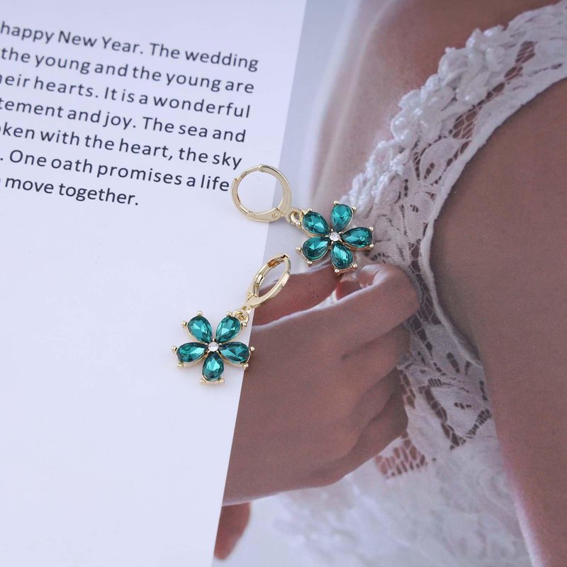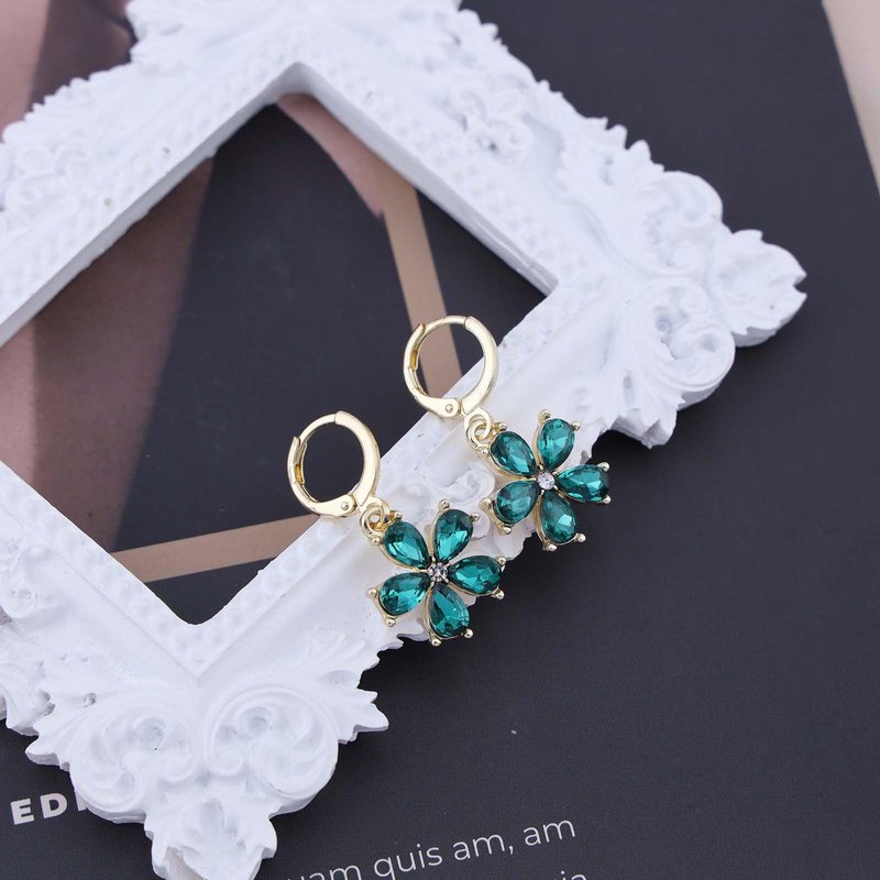 Sttiafay Vintage Emerald Flower Drop Earrings Green Crystal Flower Earrings Cz Flower Dangle Earrings Gold Huggie Hoop Earrings Jewelry for Women