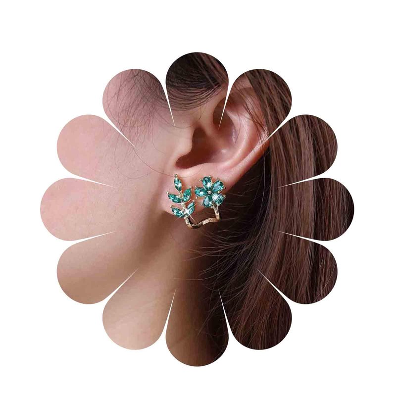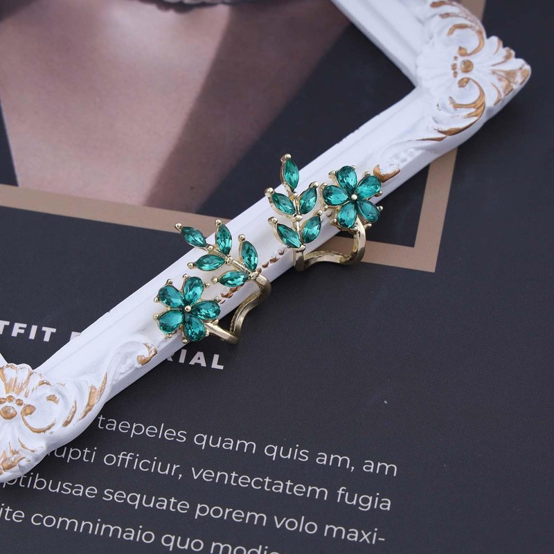 Sttiafay Vintage Emerald Flower Ear Cuff Earrings Green Crystal Flower Earrings Crystal Leaf Stud Earrings Emerald Leaf Earrings Jewelry for Women