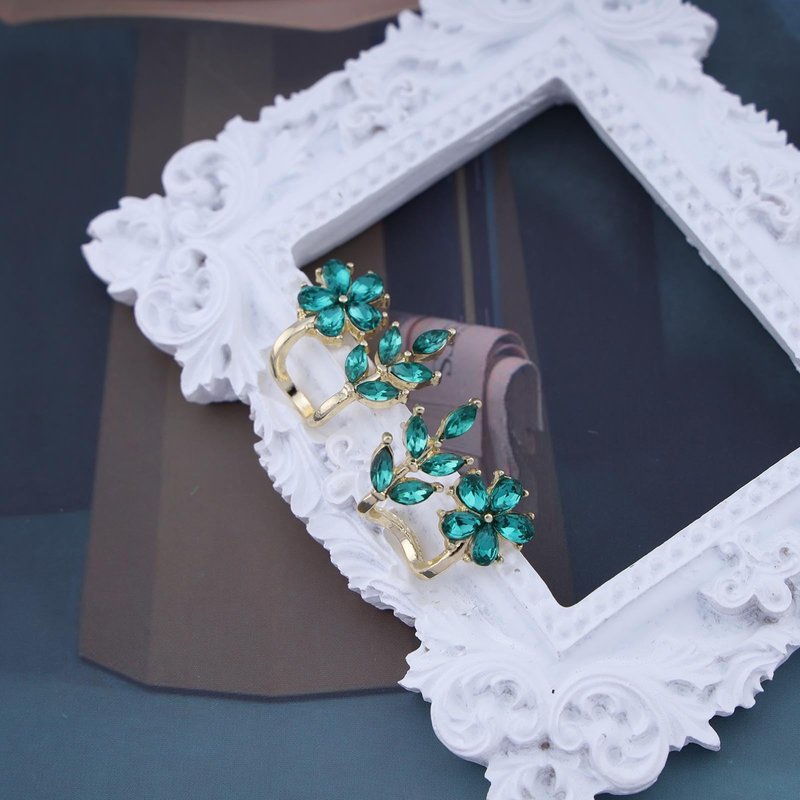 - Green leaf cuff wrap earrings .Item Details:Handmade Item.Size:As Shown.Color:Green.Materials:Quality Alloy/Crystal.Location:Ear.Style:Boho/Vintage.